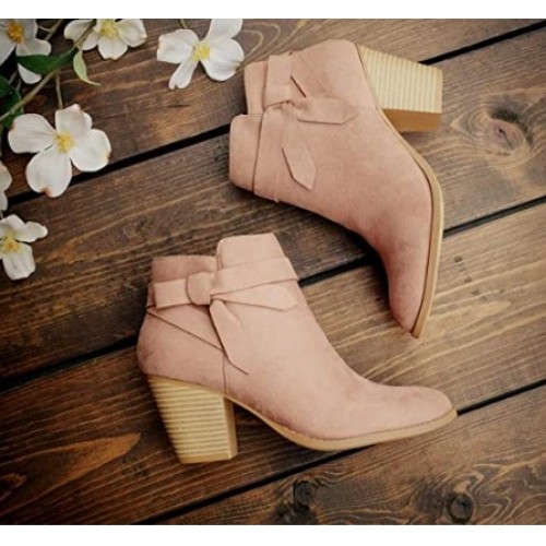• Feature: Women's ankle booties with chunky stacked heel,side strappy bowtie and zipper,faux suede, high top,fashion walking booties